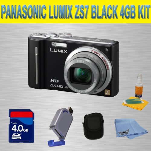 Panasonic LUMIX ZS7 12.1MP Digital Camera (Black) + 4GB Memory Card, Hi-Speed SD USB 2.0 Card Reader, Deluxe Carrying Case, 3pc. Lens Cleaning Kit and Angel Seller Cleaning Cloth Feature
