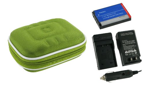 rooCASE 3n1 (Med Nylon Green) Hard Shell Case with Memory Foam / DMW-BCG10 845mAh Li-Ion Battery / AC DC Charger for Panasonic Lumix DMC-ZR1 DMC-ZR3 DMC-ZS5 DMC-ZS6 DMC-ZS7 Review B0047Q0N0K