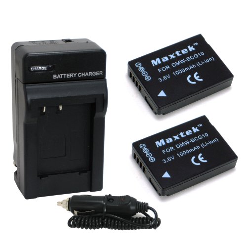 Power Pack: (Two MaxTek Li-ion Rechargeable Battery and One Pocket Charger With Car Adapter) for Panasonic DMW-BCG10 BCG10E BCG10PP, Works on Lumix DMC-ZR1 DMC-ZR3 DMC-ZS1 DMC-ZS3 DMC-ZS5 DMC-ZS6 DMC-ZS7 DMC-ZX1 DMC-ZX3 DMC-TZ6 DMC-TZ7 DMC-TZ8 DMC-TZ10 (Decoded, ID secured) Review B0041IU782