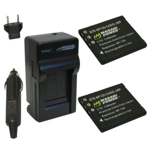 The Wasabi Power NP120-CASIO Power Kit includes: 2 Hi-Capacity batteries with premium Japanese cells, 1 mini rapid charger (110/240V) with fold-out AC prongs, Car adapter to charge from your vehicle's DC/lighter outlet, European plug adapter for travel All items meet or exceed OEM standards and come with a 3-year manufacturer warranty.