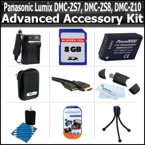 8GB Advanced Accessory Kit For Panasonic Lumix DMC-ZS7 DMC-ZS10, DMC-ZS8 Digital Camera Includes 8GB High Speed SD Memory Card + Case + Extended Replacement Panasonic DMW-BCG10 (1200 mAH) Battery + AC/DC Travel Charger + Screen Protectors +Mini HDMI Cable Review B004BFC27Y
